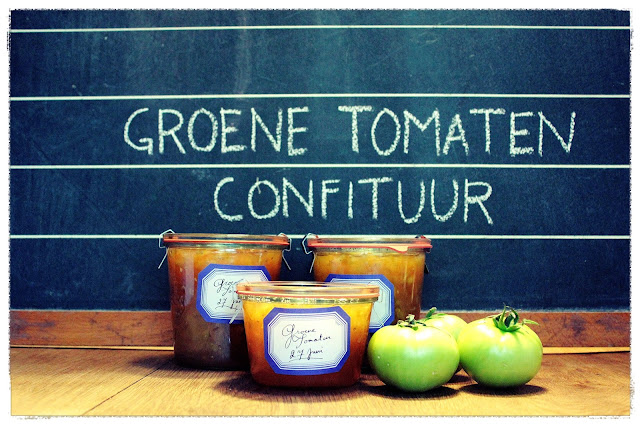 Enkele jaren geleden, tijdens een rondreis in Frankrijk, logeerden we in een gezellige B&B waar ze het lekkerste ontbijt ooit serveerden. Er was een grote keuze aan zalige lekkere zelfgemaakte confituren, eentje was ons onbekend en we hadden het raden naar van wat het gemaakt was. Een onmogelijke opdracht daar we er nog nooit van hadden gehoord dat je daar zo'n overheerlijke confituur van kunt maken, GROENE TOMATEN...